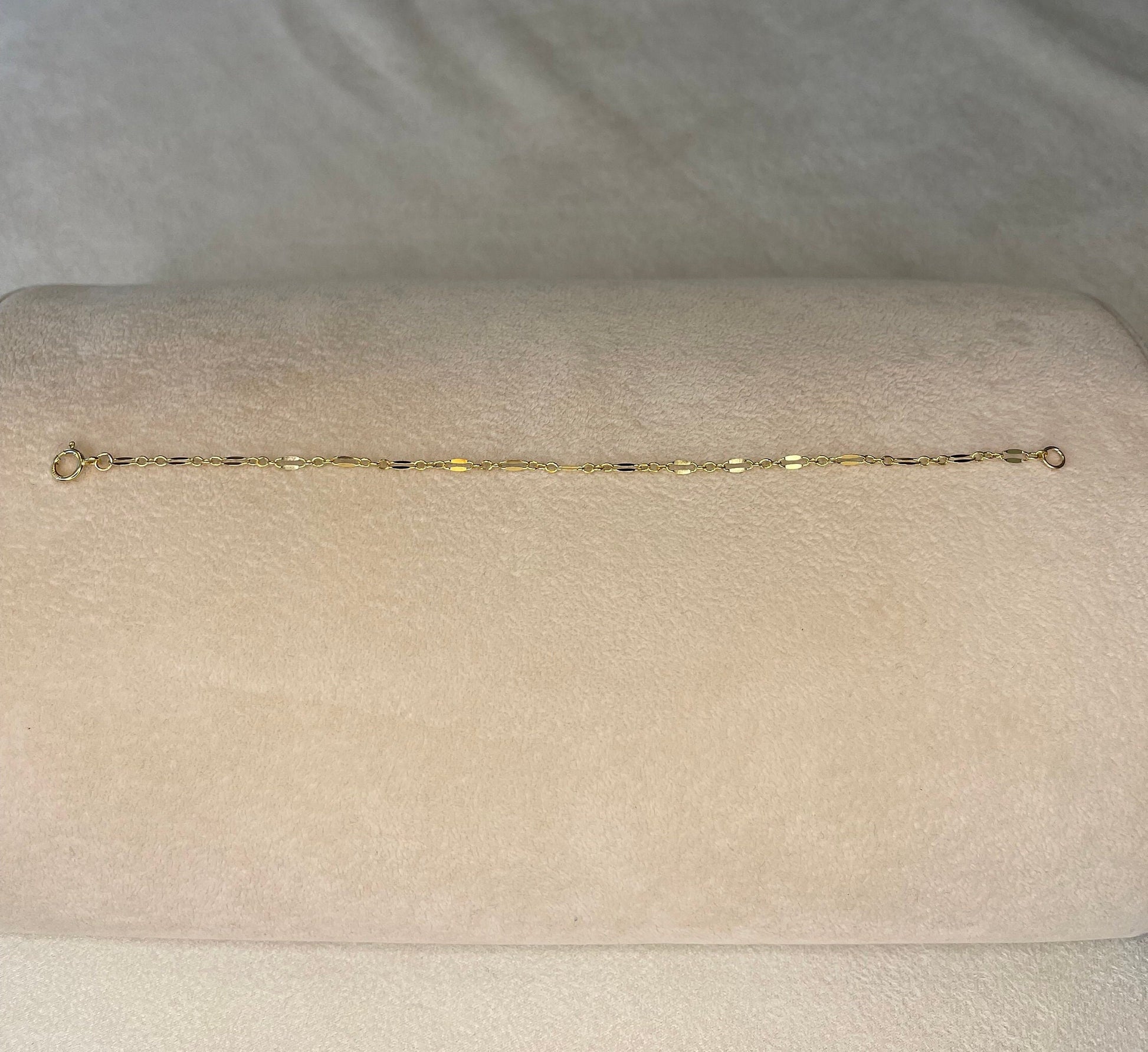 This 14K gold fill bracelet is delicate, versatile and light enough for everyday wear while also adding a bit of sparkle to any outfit.